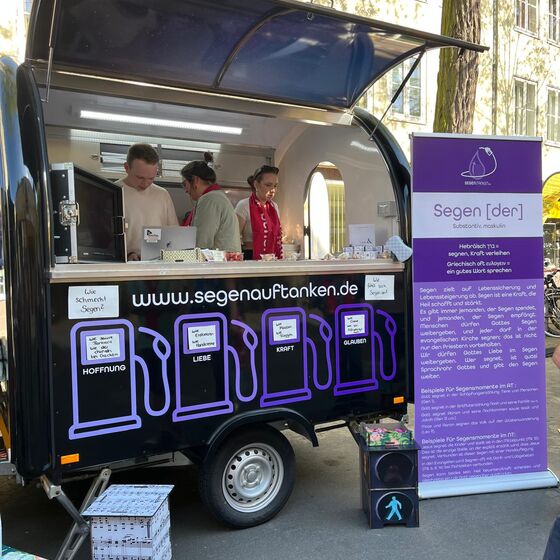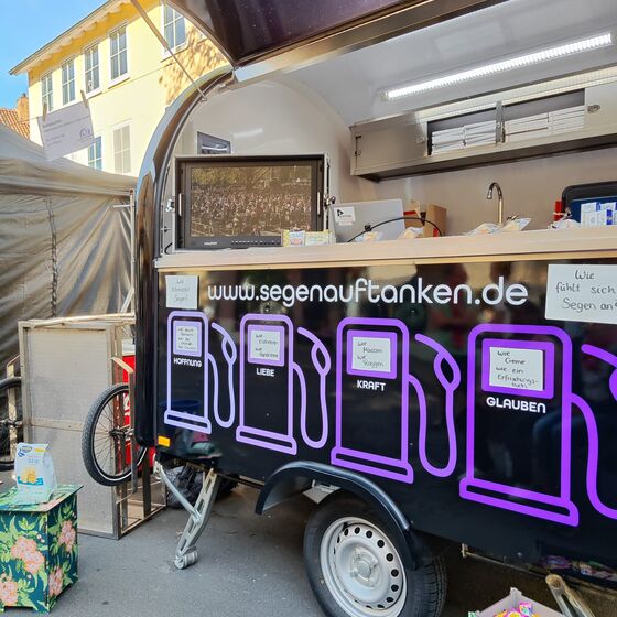 fand dieses Jahr vom 30.04. bis 04.05.2025 in unserer Landeshauptstadt Hannover statt. Wie immer begann diese Veranstaltung mit zwei großen Festgottesdiensten. Im Anschluss hieran fand der Abend der Begegnung statt, an dem auch wir vom Kirchenkreis Bramsche teilgenommen haben. Mit unserem neuen Segensmobil haben wir Segen in unterschiedlichen Formen empfangen und weitergegeben. Wie schmeckt Segen? Wie eine Erdbeere oder wie ein saures Bonbon? Wie fühlt sich Segen an? Wie eine zarte Handcreme oder wie ein harter Schwamm? Aber nicht nur für die Segenshungrigen gab es etwas an unserem Stand, sondern auch für alle anderen, die hungrig an unseren Stand kamen. Neben unserem Segensmobil war ein weiterer Stand aufgebaut, an dem Kartoffelpuffer gebraten wurden und die schon von weitem in der Knochenhauerstraße zu riechen waren. Die Schlangen vor beiden Ständen waren enorm lang und manch ein Besucher hat geduldig bis zu einer Stunde auf seine Portion Kartoffelpuffer gewartet.