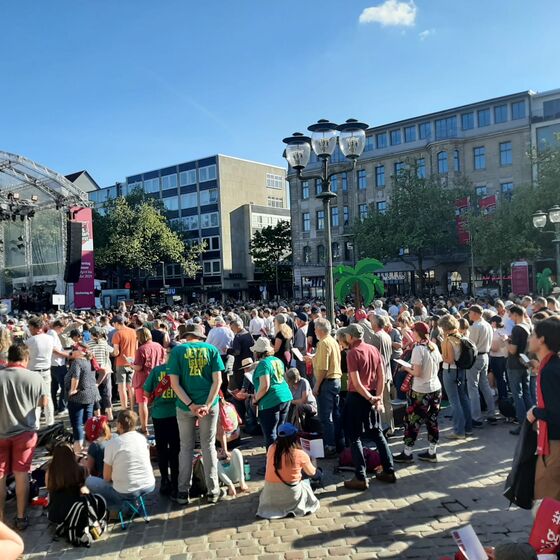 Die Stimmung an diesem warmen, sommerlichen Abend war ausgelassen, fröhlich und einfach nur spitze – die richtige Einstimmung für die kommenden Tage auf dem Kirchentag.